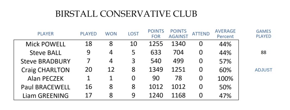 BIRSTALL CONSERVATIVE CLUB - Batley & Birstall Snooker League
